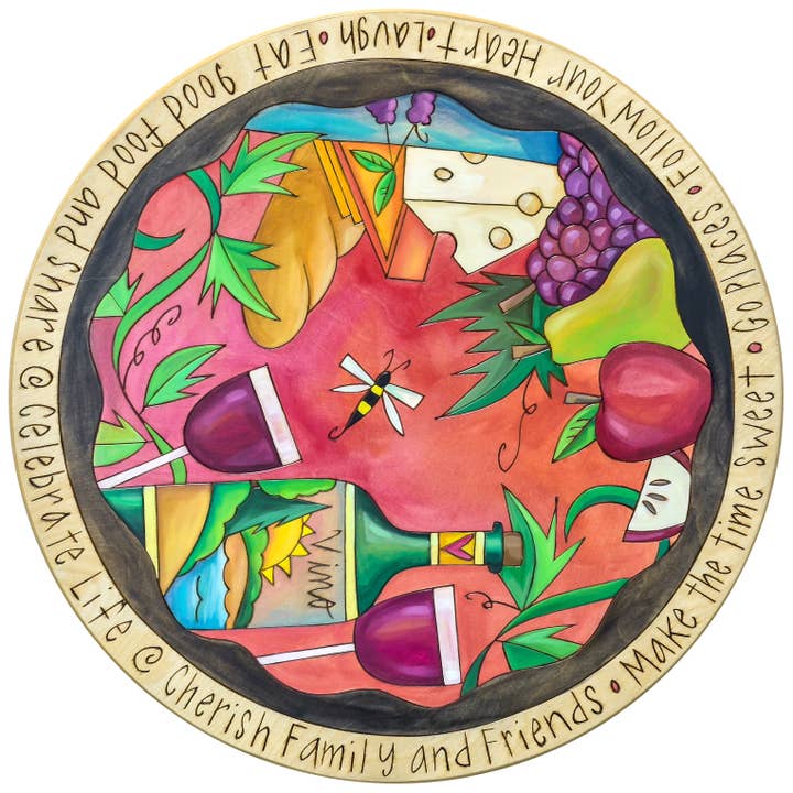One-of-a-kind, hand painted lazy susans by Sticks that celebrates the best things of summer. Each lazy susan has a hole on the back, so it can be hung on the wall as a piece of art.