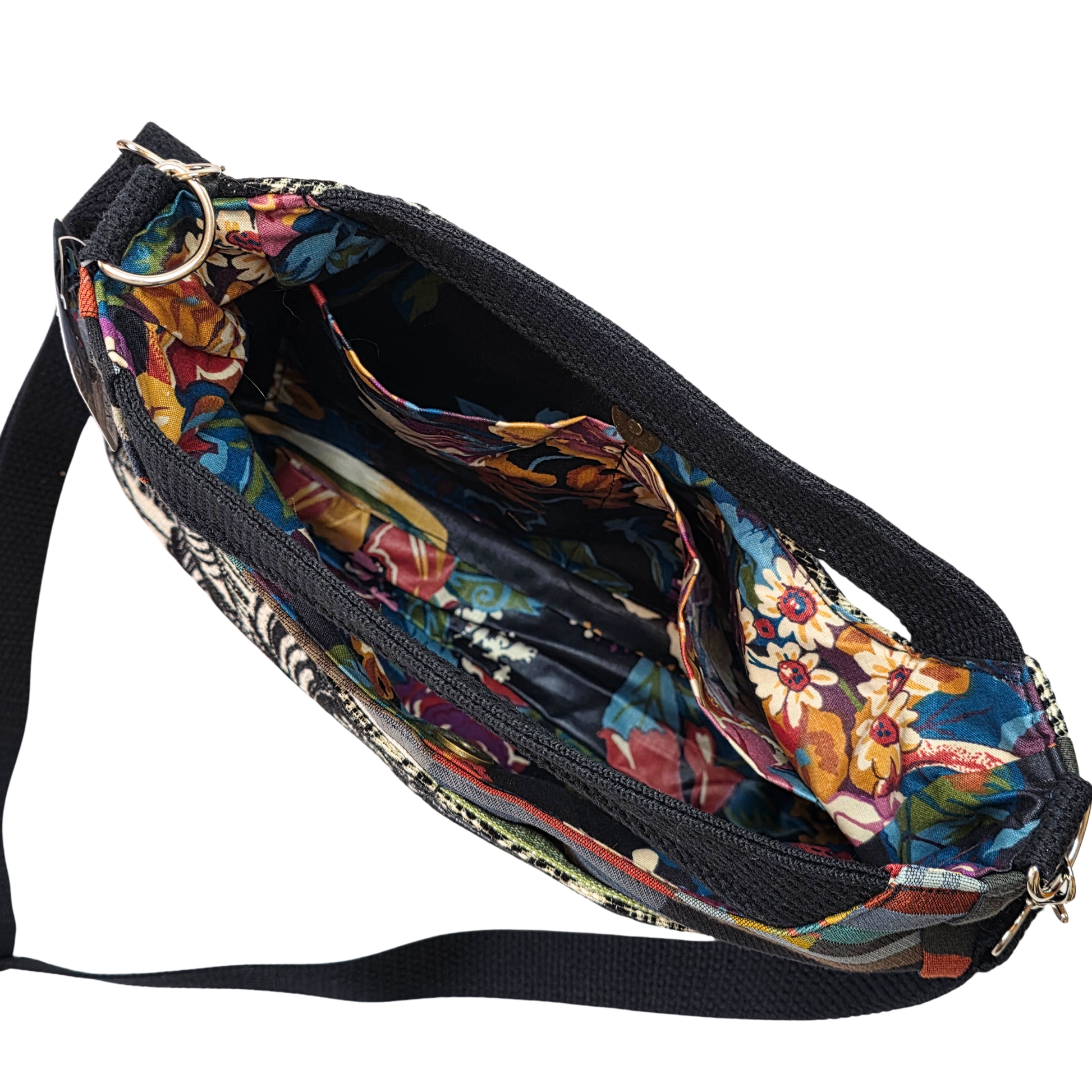 All of our beautiful bags are made by me (Meg) and a handful of home sewers in Colorado. Our thoughtful, functional, and unique designs, along with the endless variety of fabrics, is what sets our products apart! Our art-to-wear concept incorporates working with roughly 300 different fabrics every year, original and functional patterns, and the piecing together of a vast amount of patterns, colors, and textures. The more fabrics I can fuse into a pattern the better, which adds to the uniqueness and aesthetic of my bags and purses. I am also able to combine several mediums to finish my creations, including hand-cut leather fringe, beaded tassels, rock-climbing rope for straps, and much more. The end result is a beautiful line that can be fun, quirky, subtle, natural, rich, ethnic, bold or eclectic.