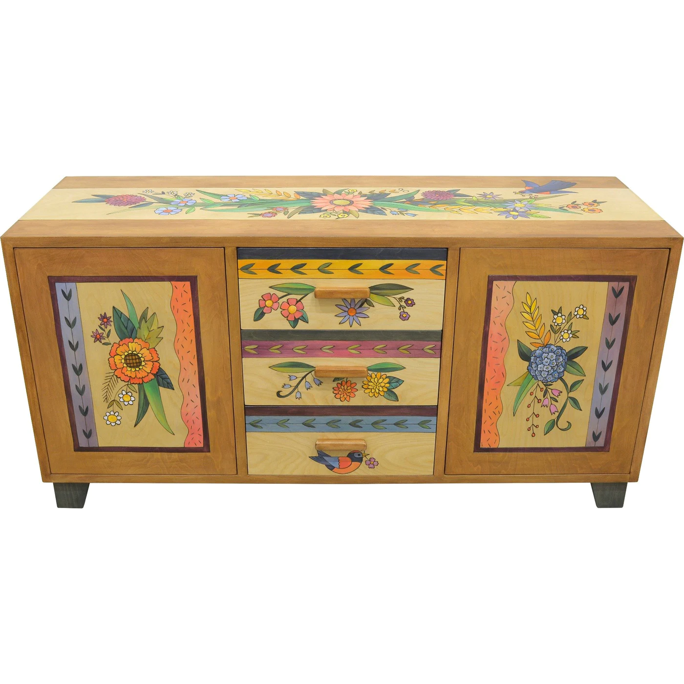 This large buffet features a gorgeous floral theme with floral sprays, birds and vines..