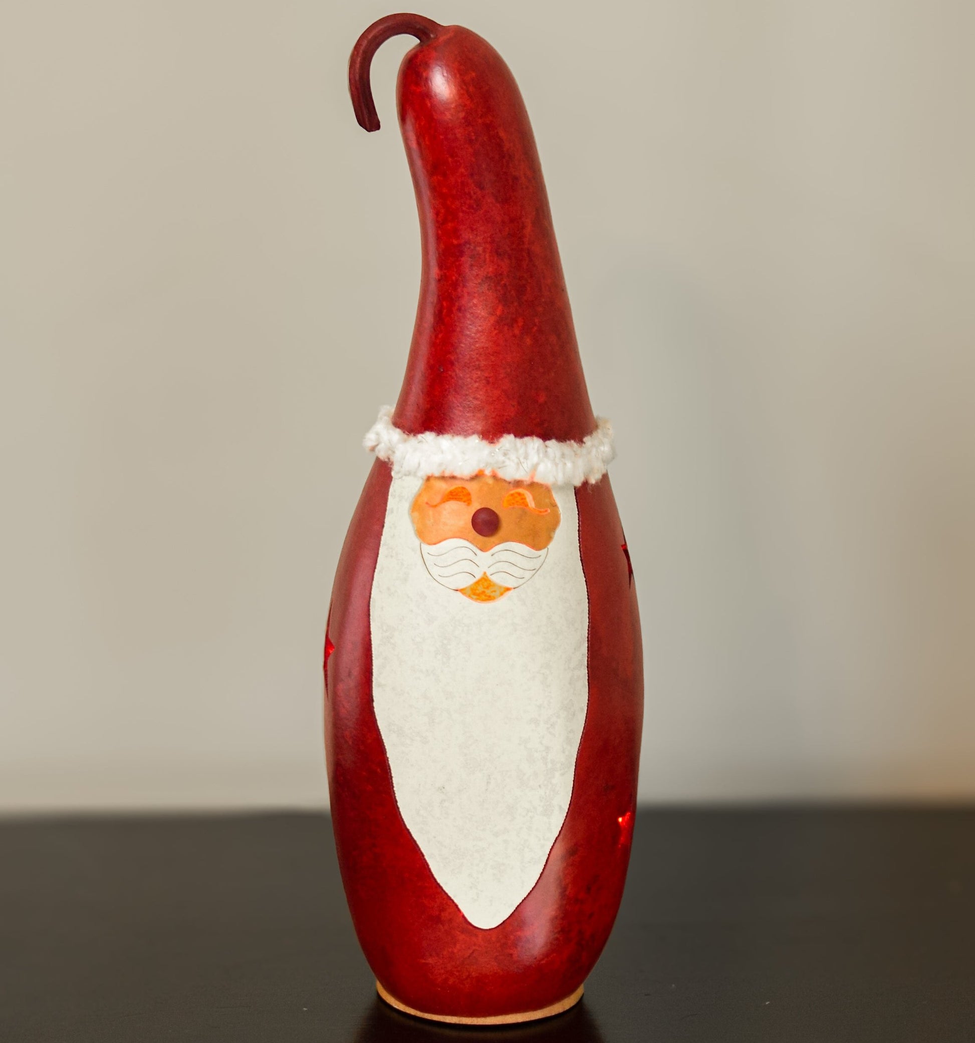 This jolly Santa is ready to spread holiday cheer! He is red in color with a white beard and cut out stars. He is approximately 14 inches tall and comes with an electric light.