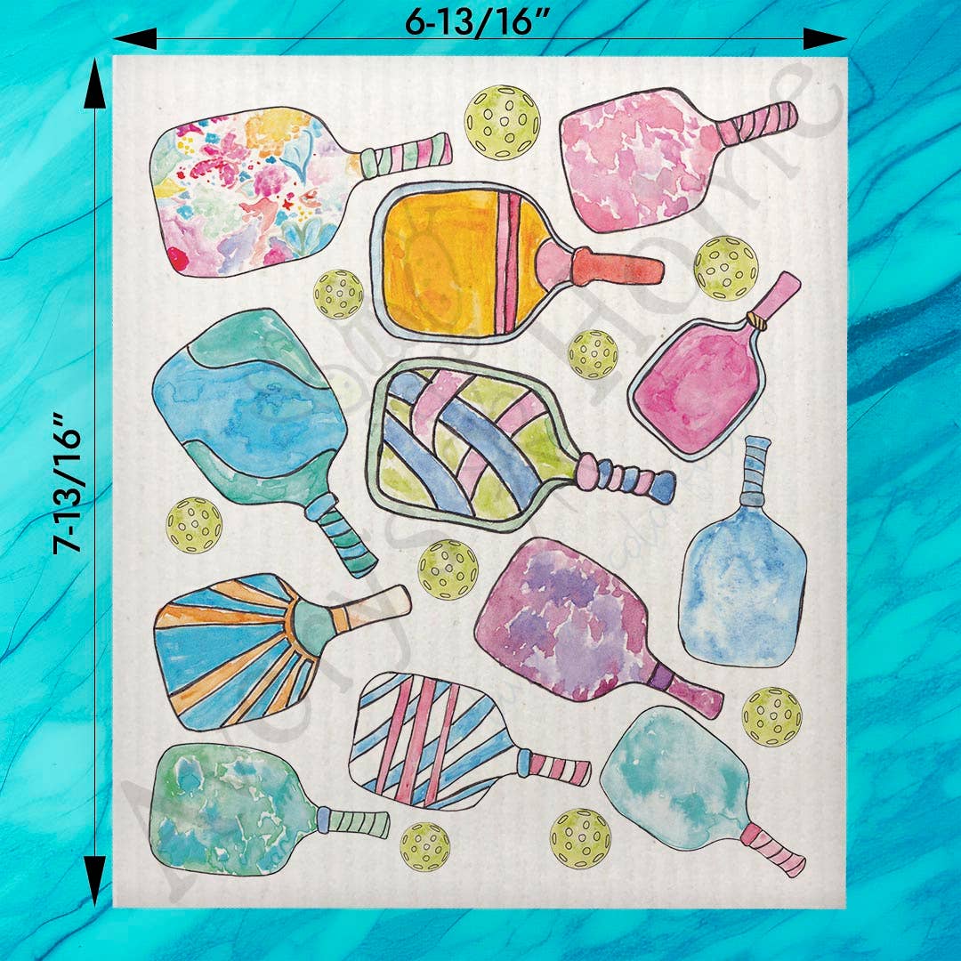Pickleball paddles in a rainbow of colors. This dishcloth is not just a kitchen utility but also a means to support various charities. Each purchase contributes to ocean conservation, ending human trafficking, saving the bees, and supporting foster care and adoption. Avery's Home believes in making a difference one dishcloth at a time.