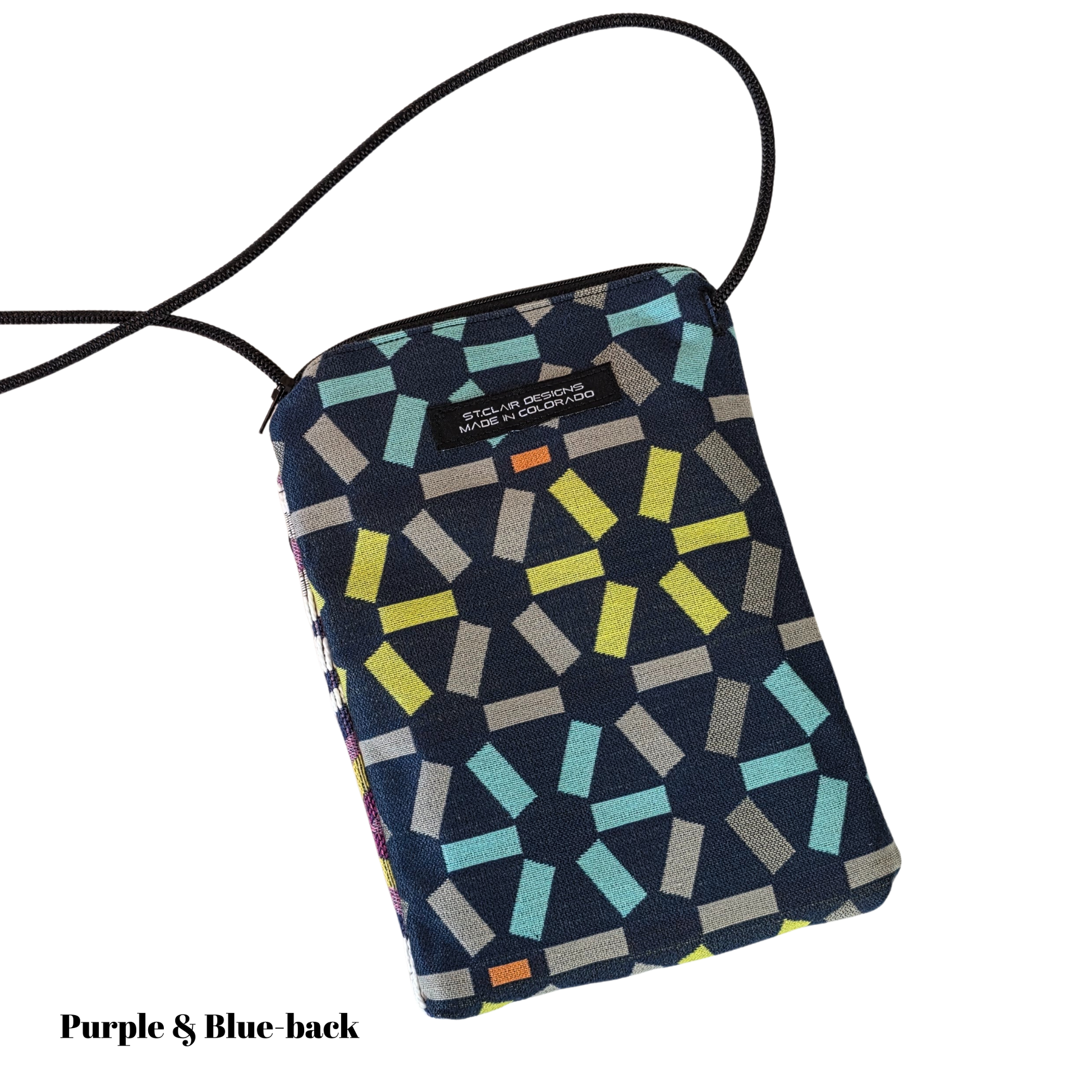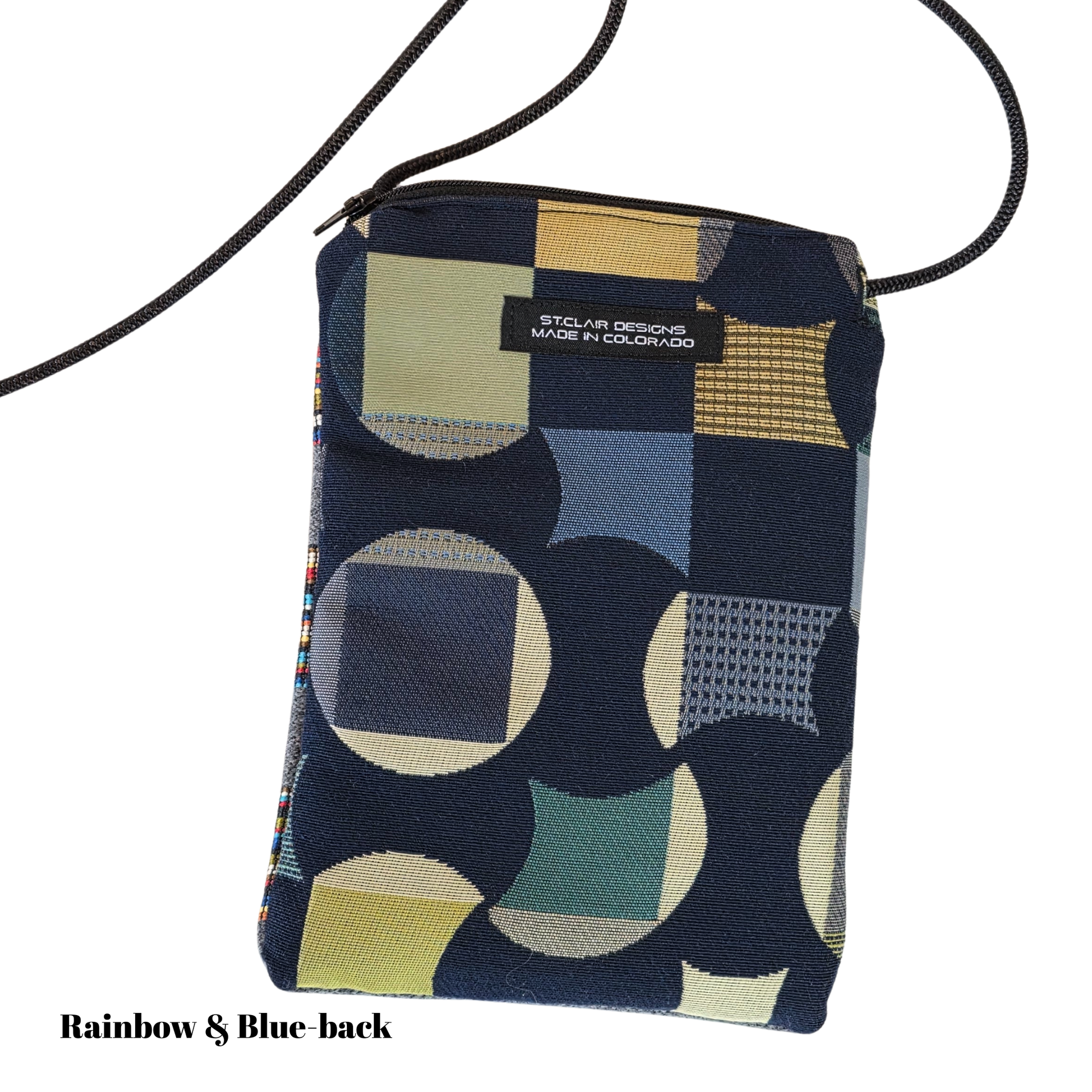 Completed with an adjustable strap!!! On the back side there is a small buttonhole, which the strap slides through, and the cord-stopper on the inside allows the cord to adjust from very long to very short. No cheap paracord around here! The strap/cord itself is of the best quality – made in the USA by the prolific climbing gear company, Blue Water Ropes. This little purse is made with 4 different fabrics, a fun lining, has an excellent price point and makes for a great gift idea!